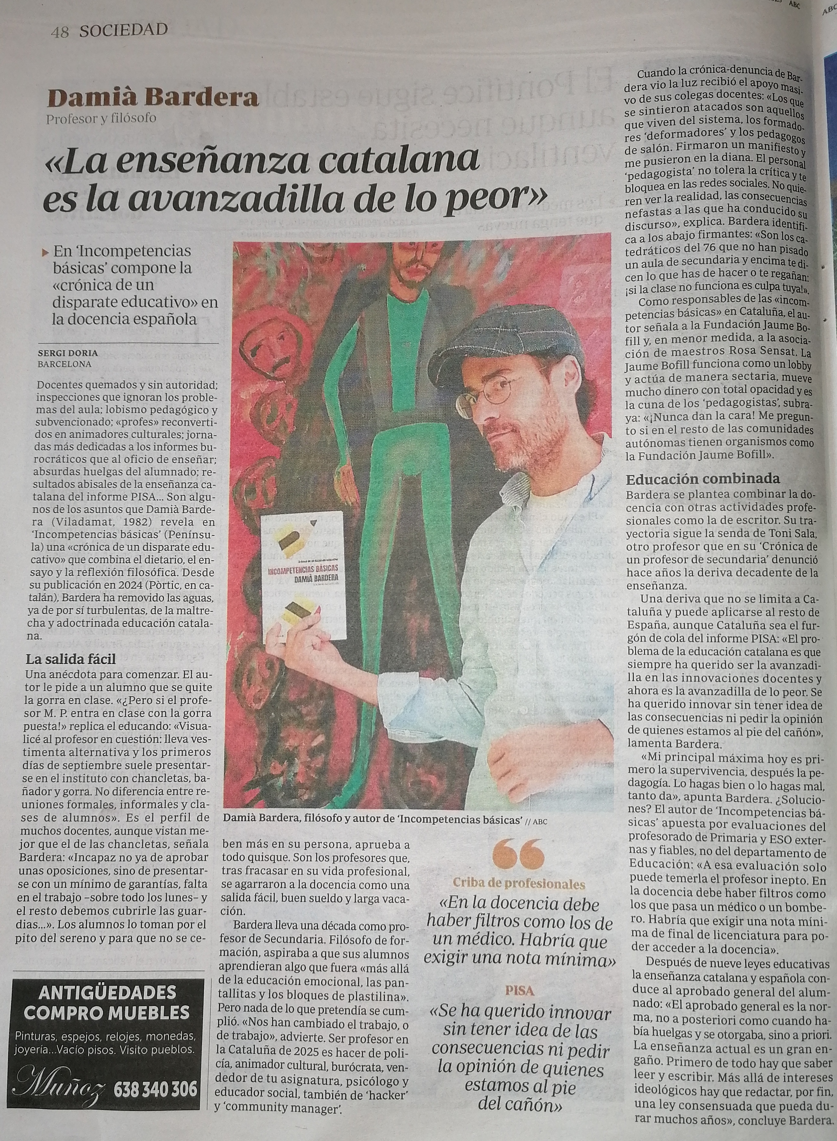 Carme Picart: El escritor y profesor Damià Bardera denuncia la degradación irrefenable de la educación